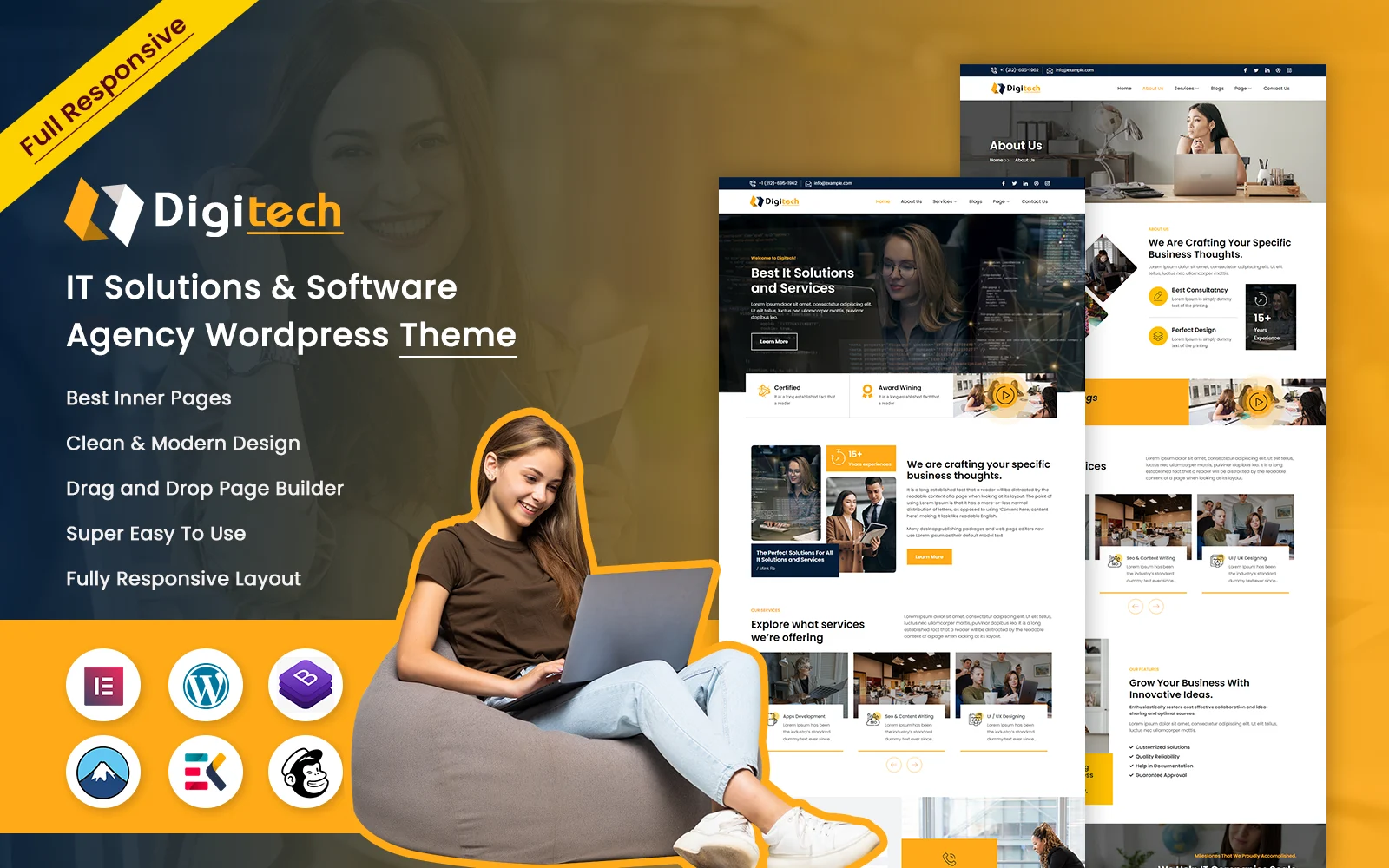 Elevate your IT solutions and software agency’s online presence with the DigiTech WordPress theme. Tailored for website developers and designers, this theme offers a seamless and efficient solution to create stunning websites rapidly. With its sleek and modern design, DigiTech effortlessly showcases your services, portfolio, and expertise. The theme’s pre-designed templates and customizable elements streamline the development process, saving you valuable time and effort. Seamlessly integrate case studies, client testimonials, and interactive features. Empower your digital agency with DigiTech’s user-friendly interface and responsive design. Supercharge your web development journey – purchase DigiTech today and unlock endless possibilities